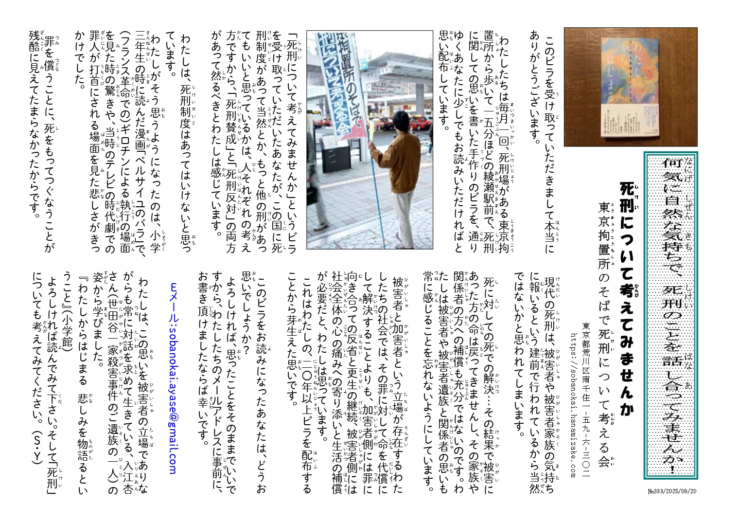 2025年09月20日 何気に自然な気持ちで、死刑のことを話し合ってみませんか!
